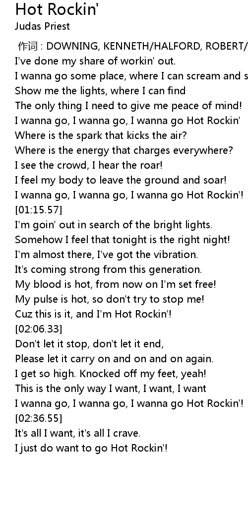 | [01:02.81] | I wanna go, I wanna go, I wanna go Hot Rockin'! |