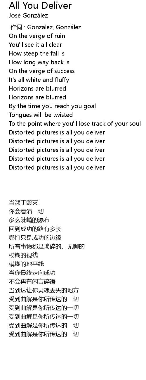 | Song | All You Deliver |