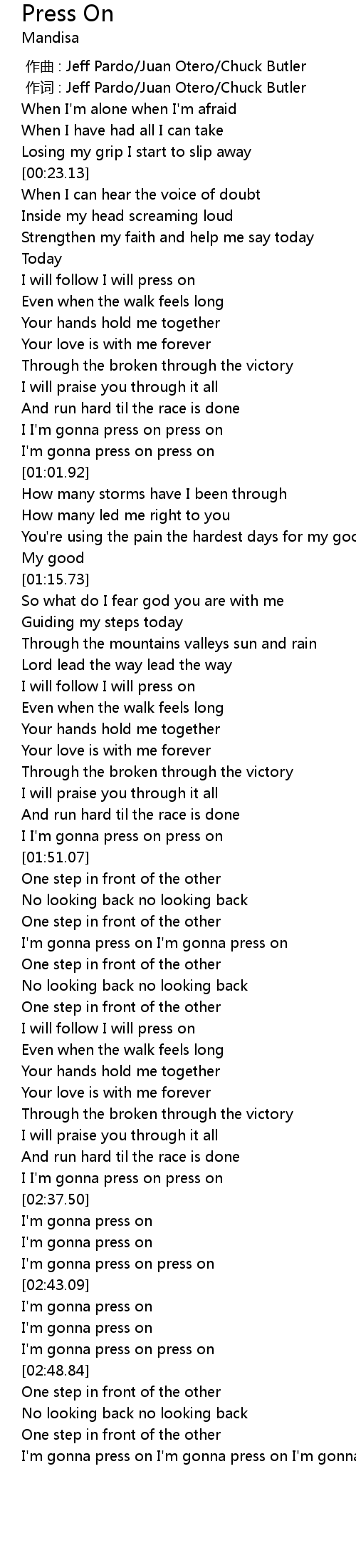 | [02:57.69] | I'm gonna press on I'm gonna press on I'm gonna press on |