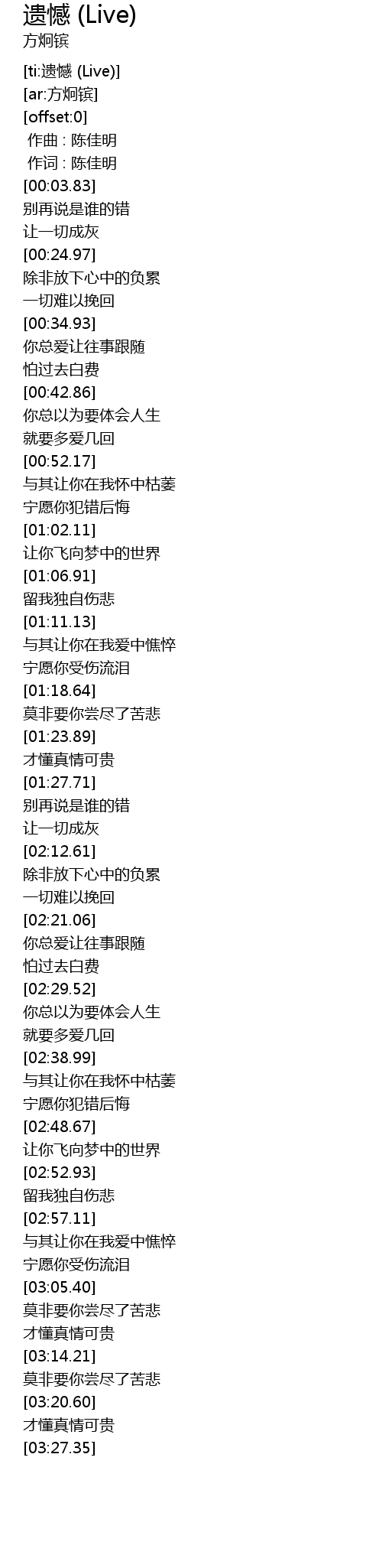 | [ti:遗憾 (Live)] | |