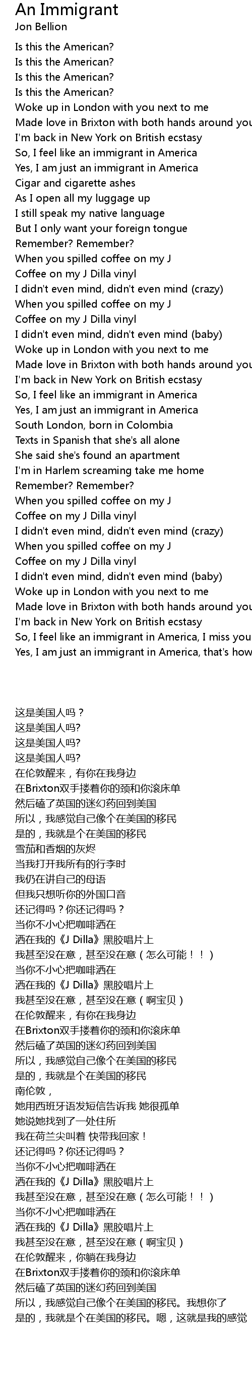 So, I feel like an immigrant in America, I miss you |