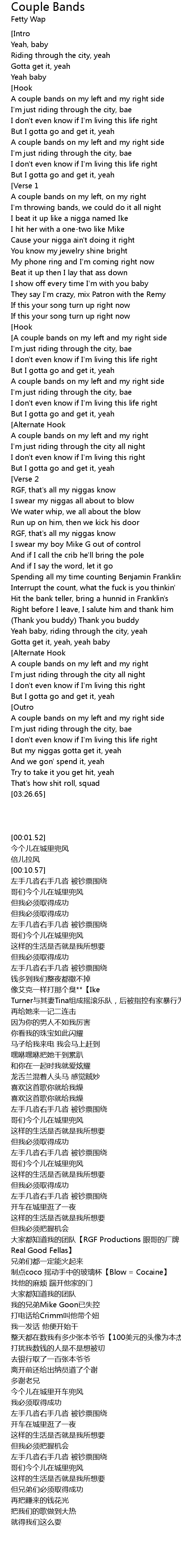 | [00:41.54] | I'm throwing bands, we could do it all night |