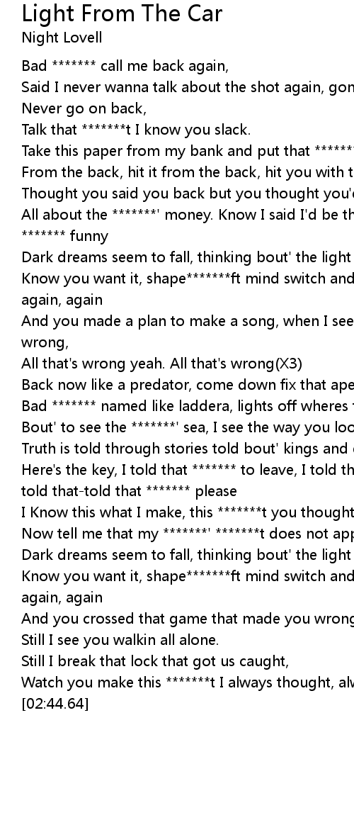 Dark dreams seem to fall, thinking bout' the light beams from the car |