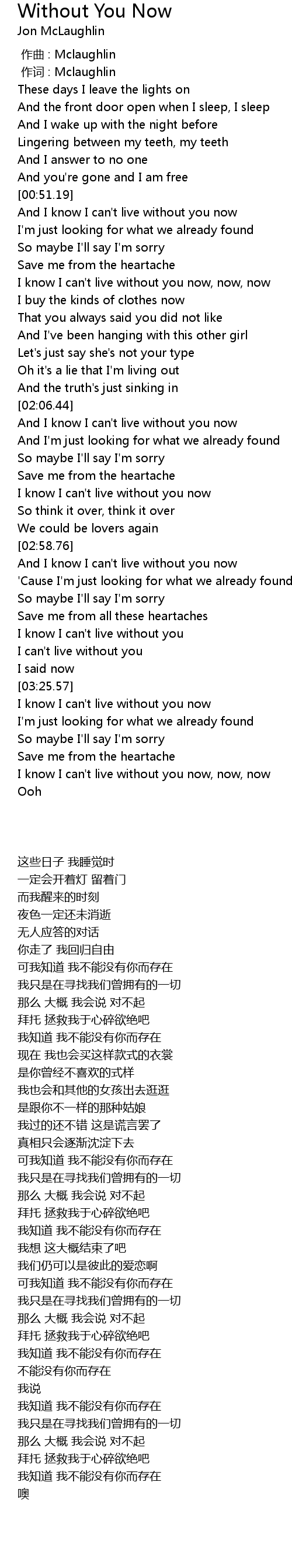| [00:51.95] | And I know I can't live without you now |