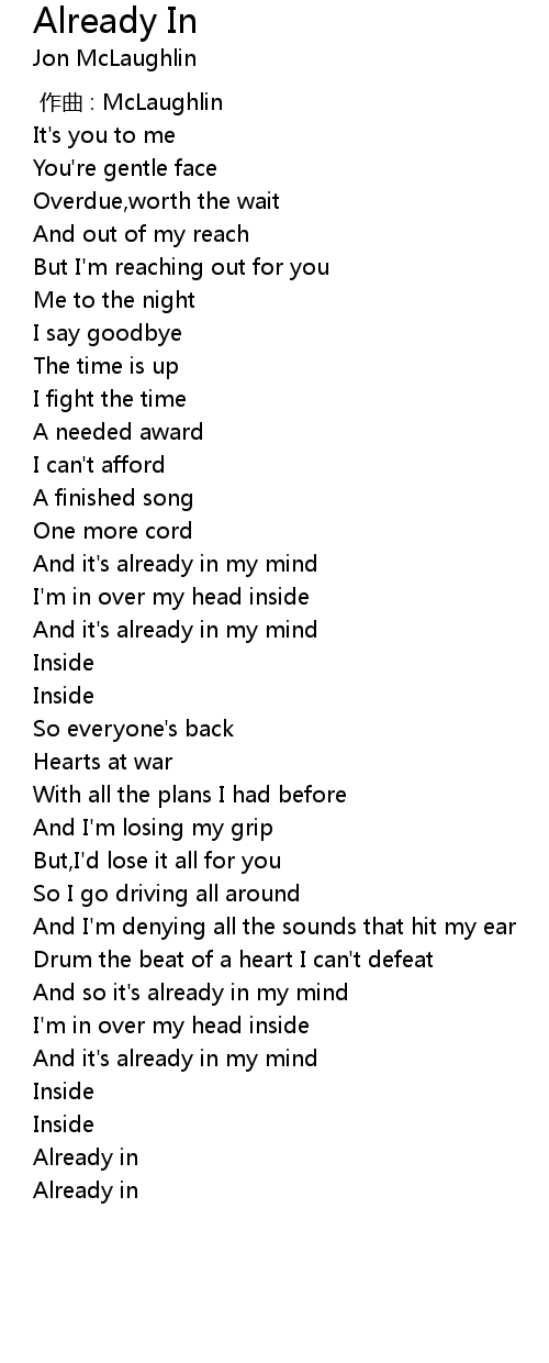 | [00:00.00] | zuò qǔ : McLaughlin |