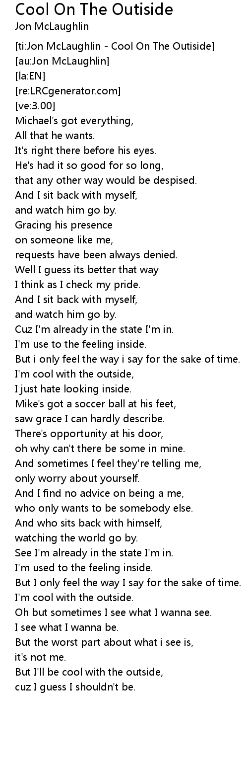 [ti:Jon McLaughlin - Cool On The Outiside] |