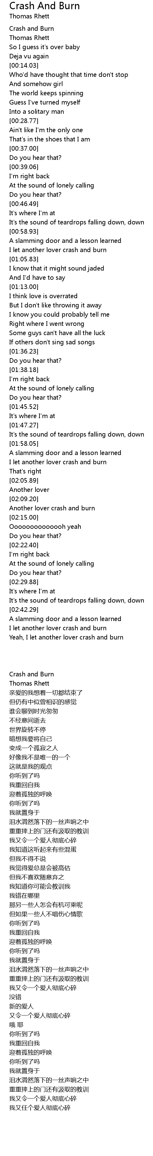 Another lover crash and burn |