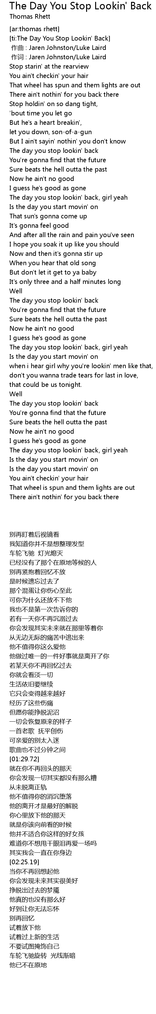 | [02:25.28] | The day you stop lookin' back |