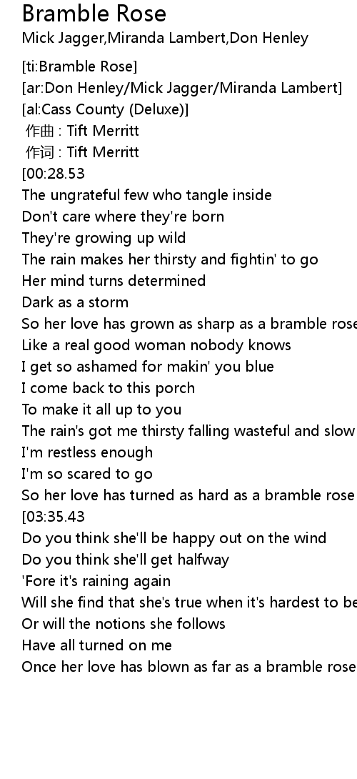 | [00:52.66] | So her love has grown as sharp as a bramble rose |