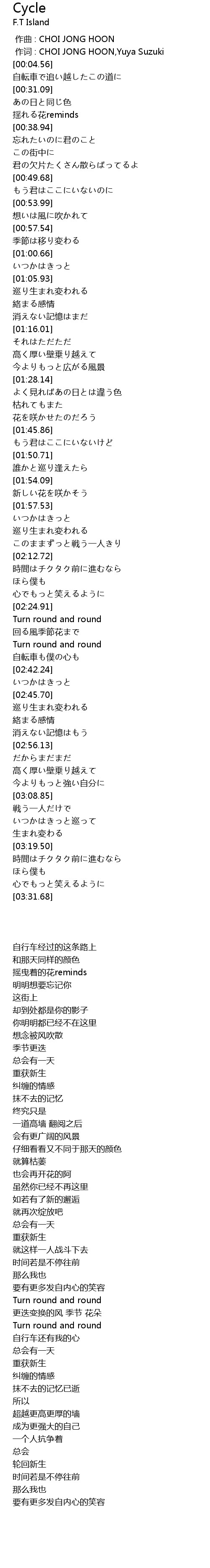 | [00:01.00] | 作词 : CHOI JONG HOON,Yuya Suzuki |