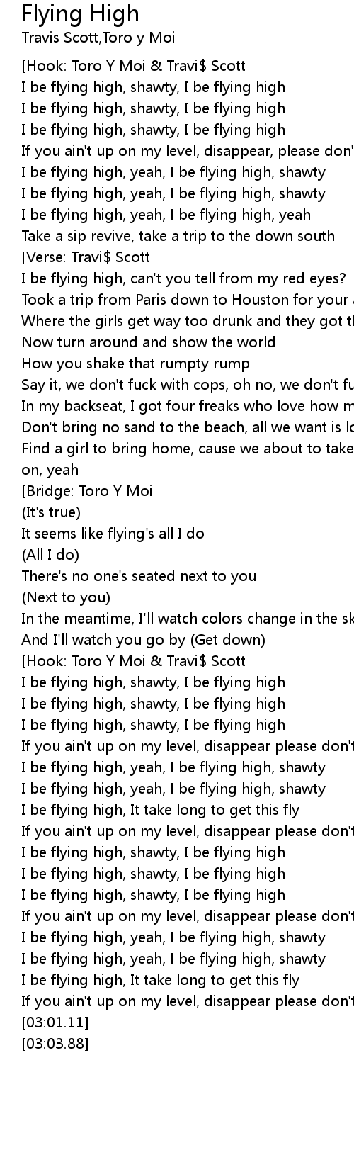 I be flying high, yeah, I be flying high, shawty |