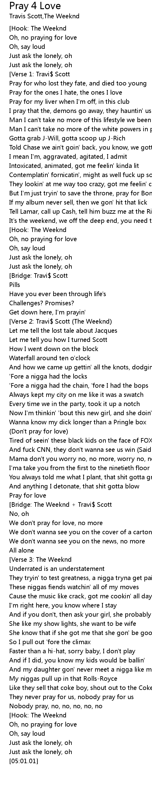 | [03:00.13][Bridge: The Weeknd + Travi$ Scott] |