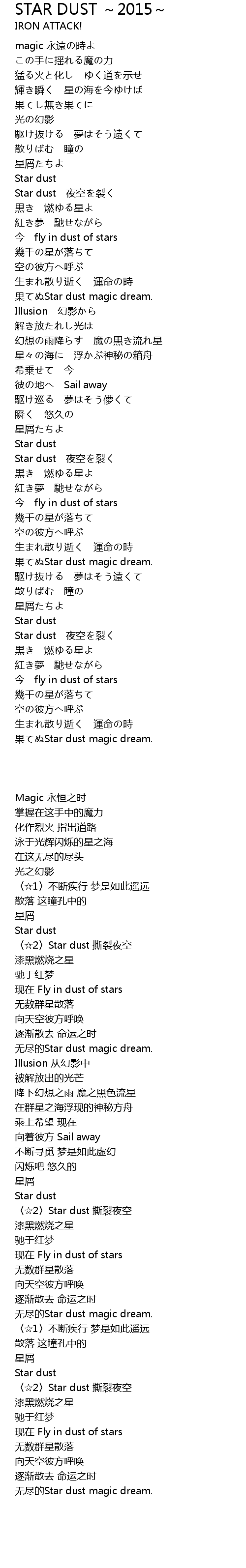 | [02:16.36] | 果てぬStar dust magic dream. |