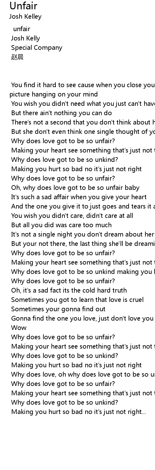 | Why does love got to be so unkind making you hurt so bad no it' s just not right | |