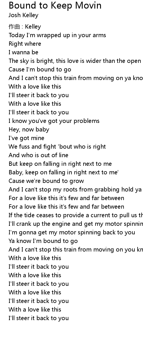 | Song | Bound to Keep Movin |