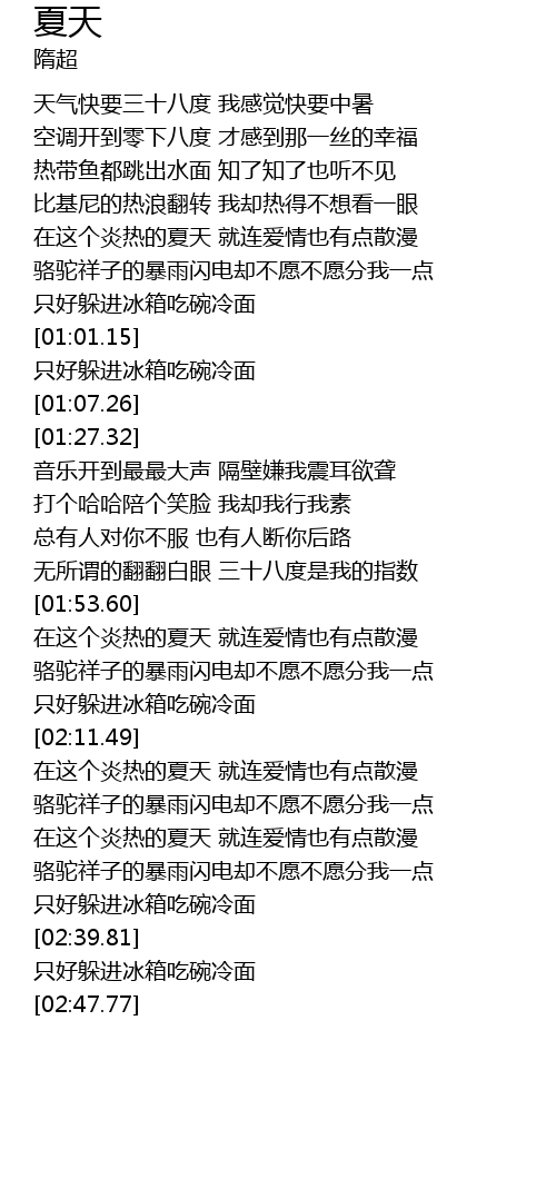 | [02:35.95] | 只好躲进冰箱吃碗冷面 |