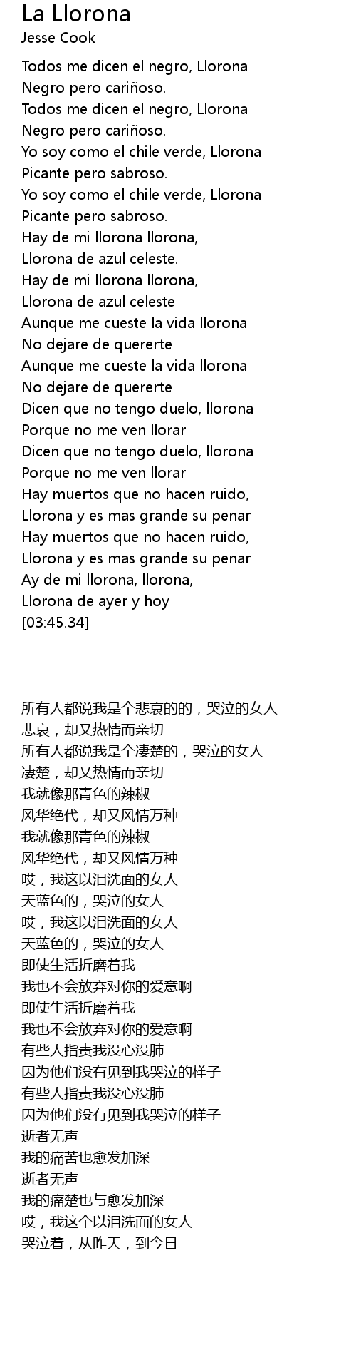 | [00:49.32] | Yo soy como el chile verde, Llorona |