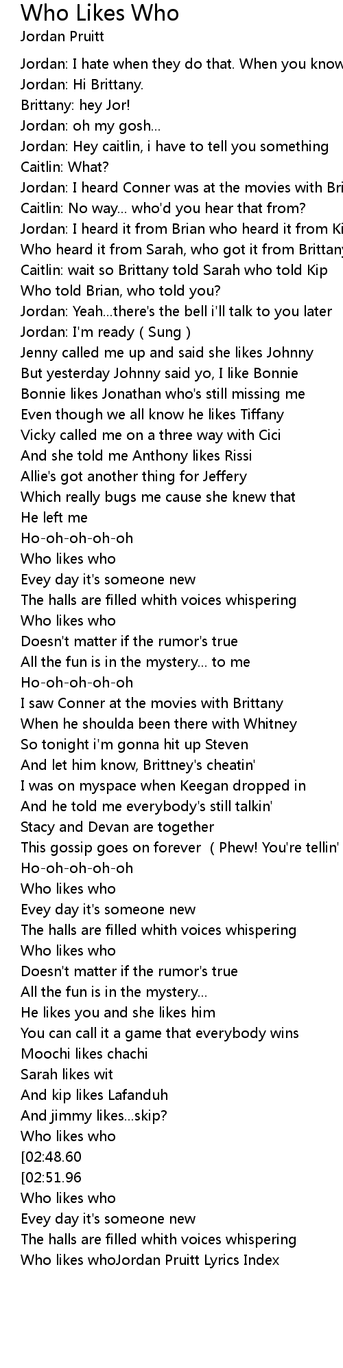 | [03:07.11] | Who likes whoJordan Pruitt Lyrics Index |