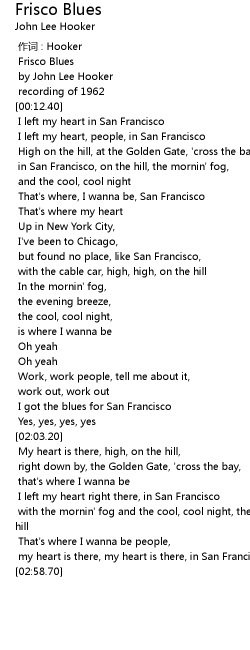 | [02:24.50] | I left my heart right there, in San Francisco |