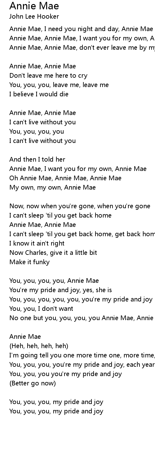 Annie Mae, Annie Mae, I want you for my own, Annie Mae |