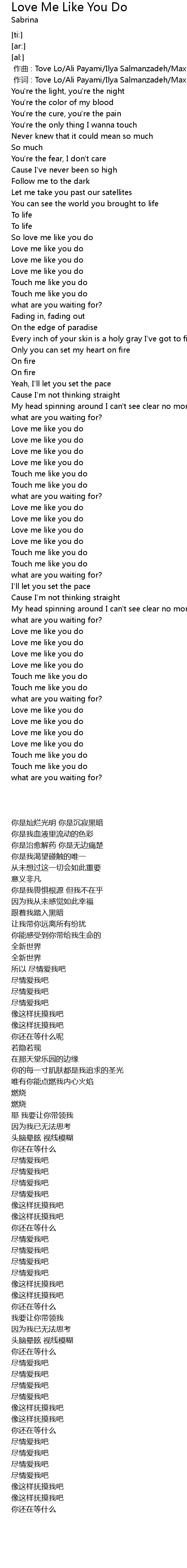 | [02:35.64] | Love me like you do |