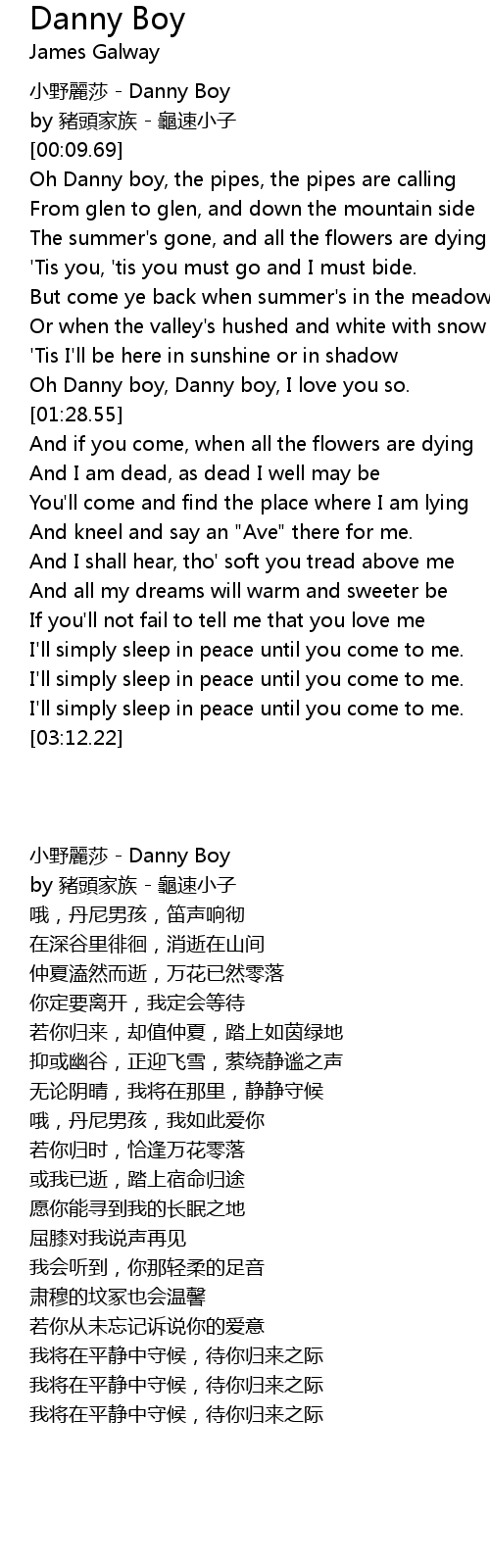 | [01:20.64] | Oh Danny boy, Danny boy, I love you so. |