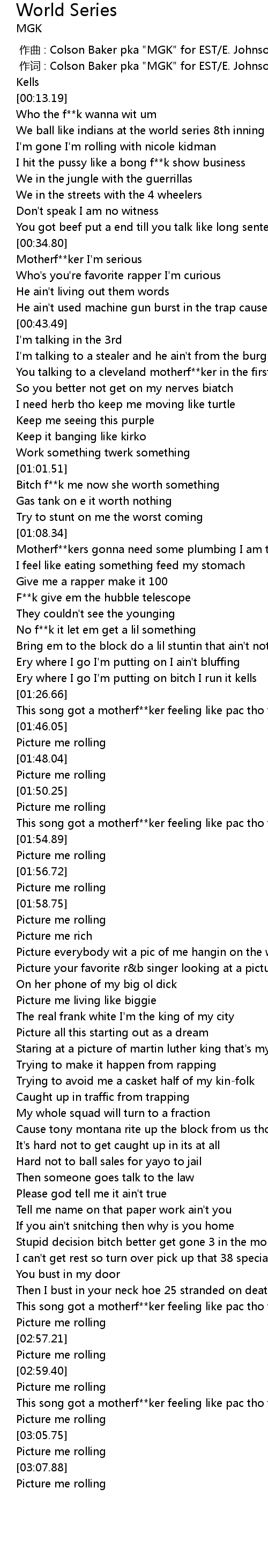 | [00:01.00] | zuo ci : Colson Baker pka " MGK" for EST E. Johnson B. Allen |