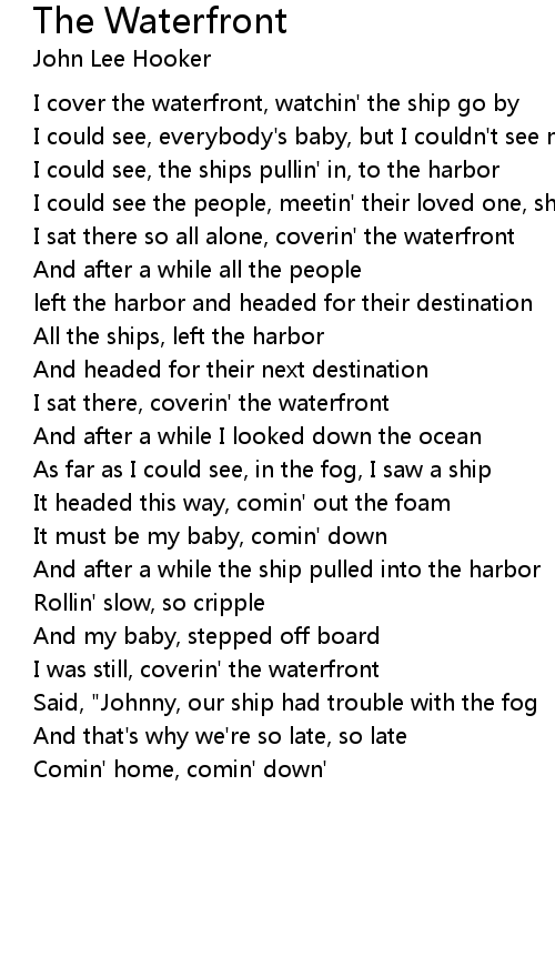 I sat there so all alone, coverin' the waterfront |