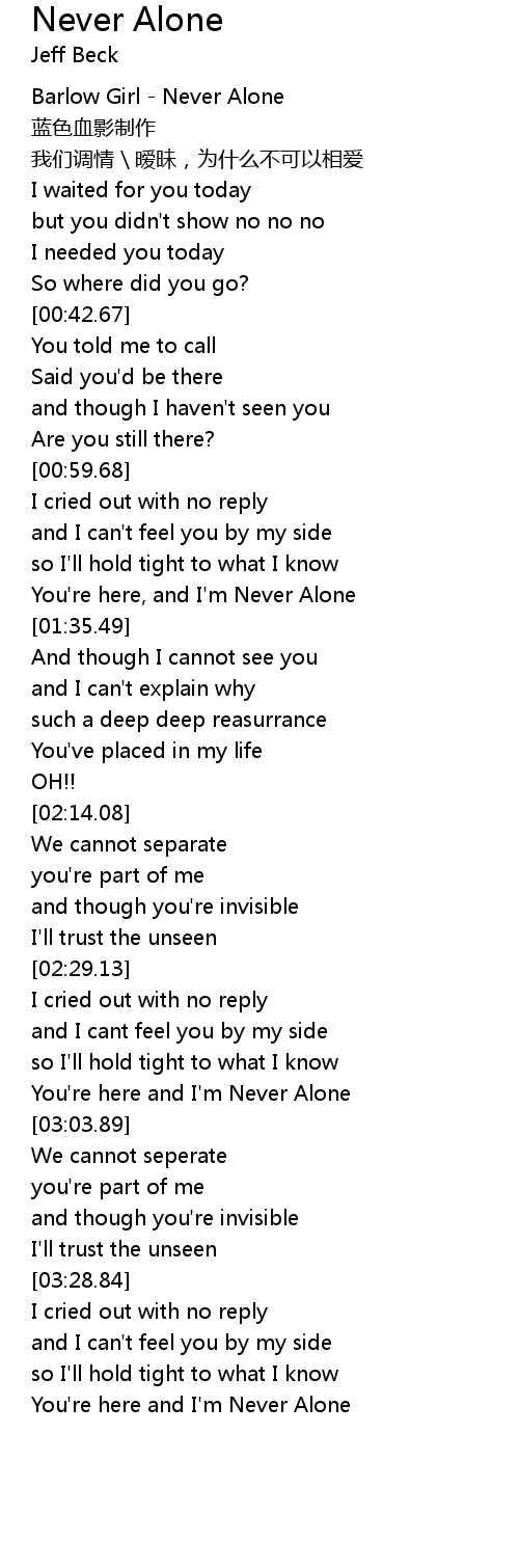 | [02:50.27] | You' re here and I' m Never Alone |