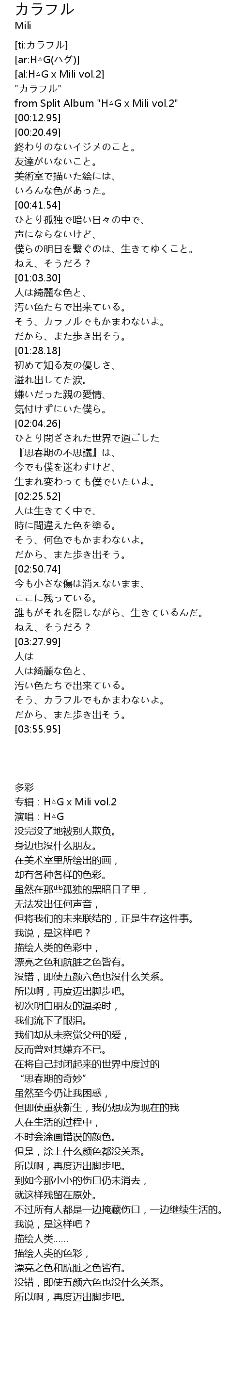 | [00:07.92] | from Split Album " H G x Mili vol. 2" |