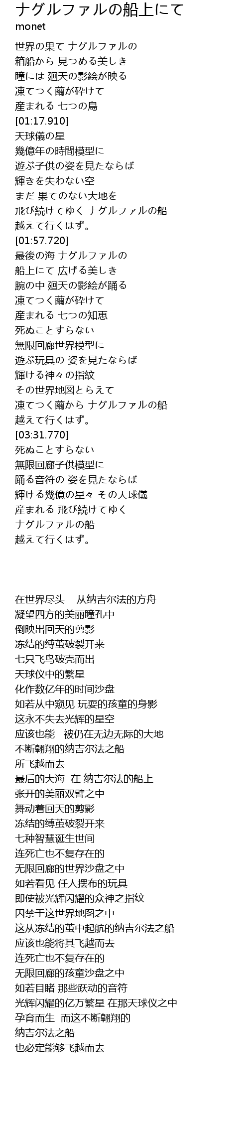 | [01:45.640] | 飛び続けてゆく ナグルファルの船 |