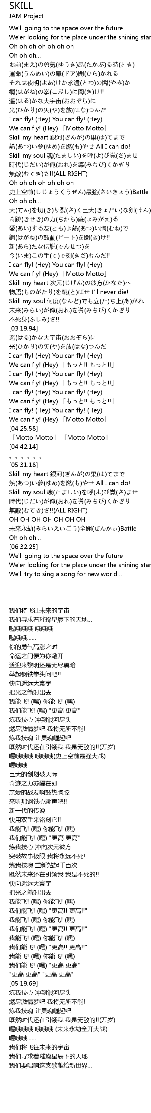 | [06:02.00] | Skill my soul 魂(たましい)を呼(よ)び覚(さ)ませ |