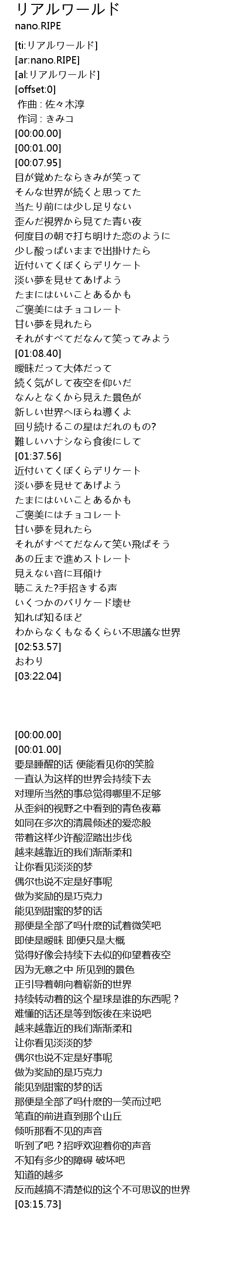 | [ti:リアルワールド] | |