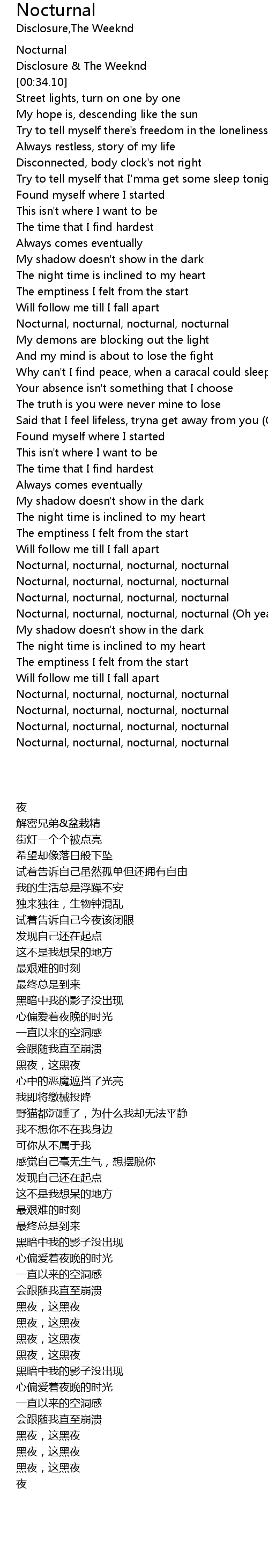 Nocturnal, nocturnal, nocturnal, nocturnal |