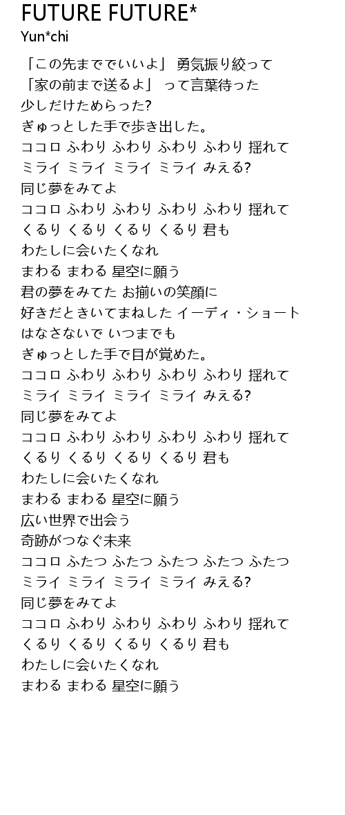 ココロ ふわり ふわり ふわり ふわり 揺れて |