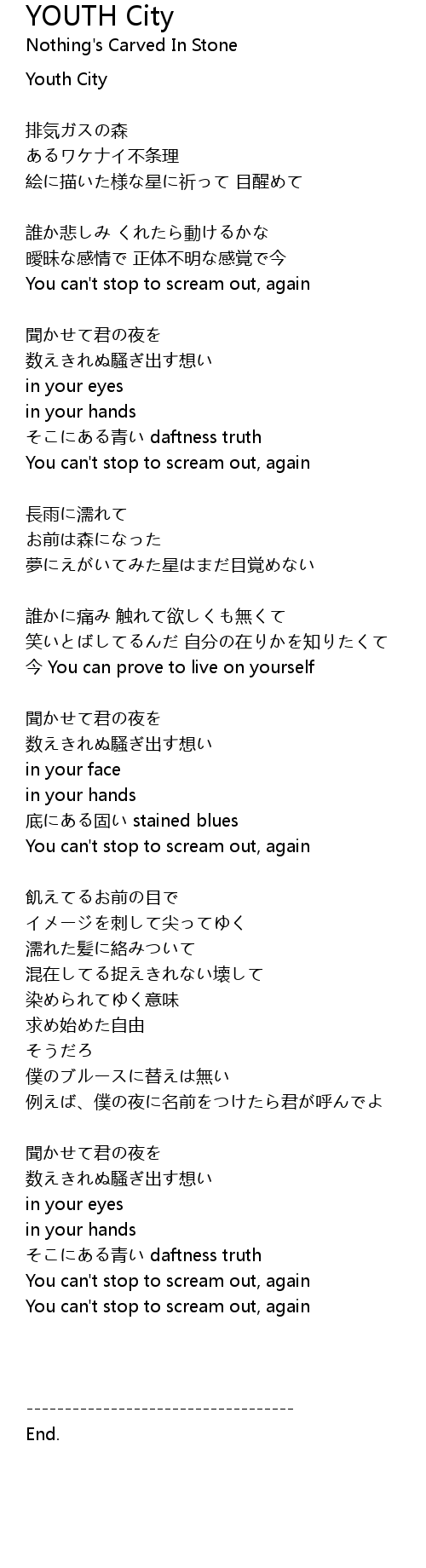 | [04:01.17] | You can' t stop to scream out, again |