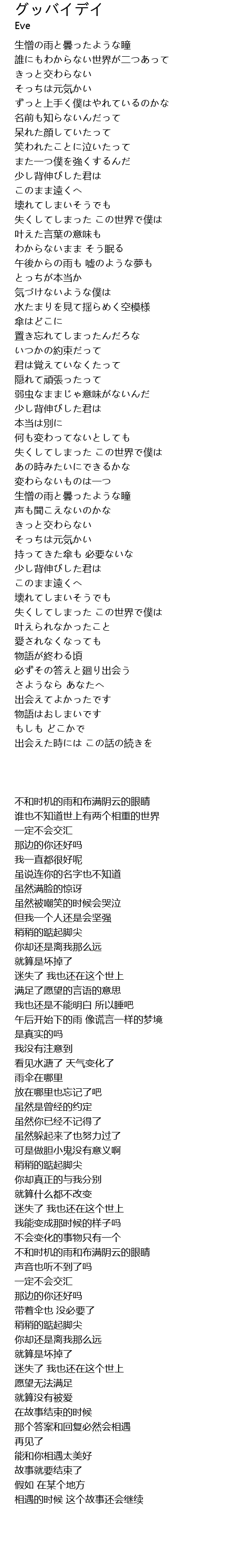 | [00:32.660] | 生憎の雨と曇ったような瞳 |