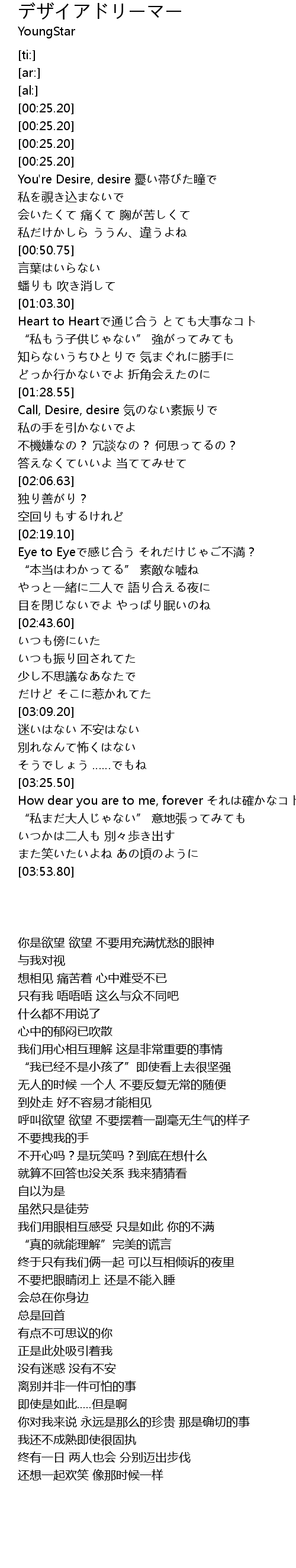 | [00:25.40] | You' re Desire, desire yōu dài tóng |