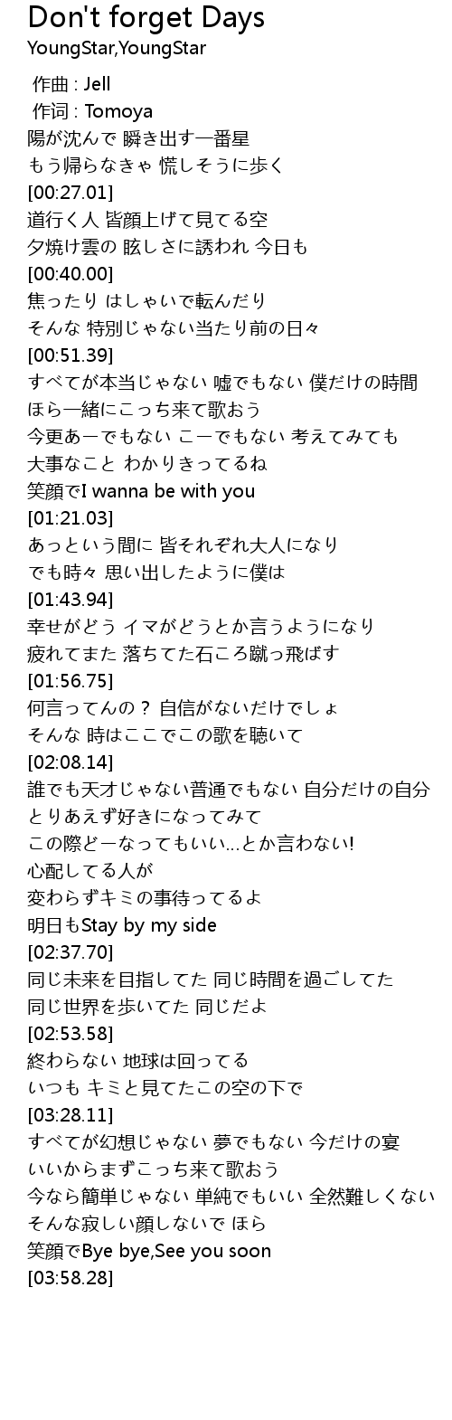 | [03:53.64] | 笑顔でBye bye,See you soon |