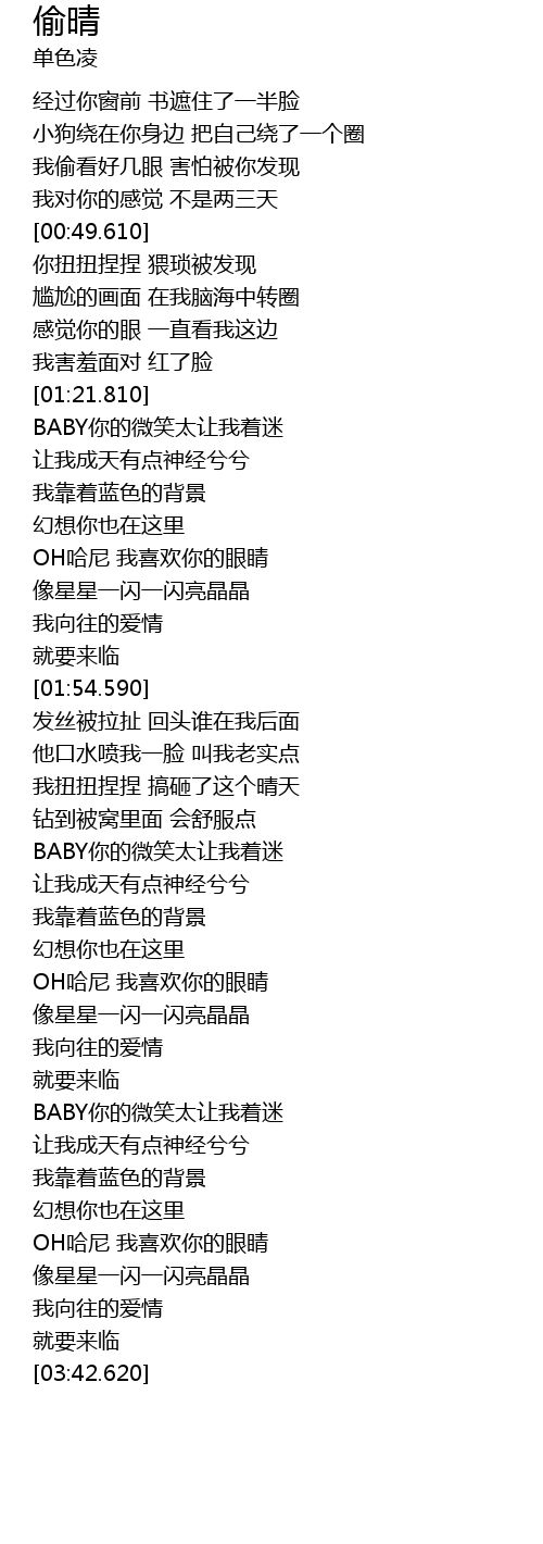 | [02:55.700] | OH哈尼 我喜欢你的眼睛 |