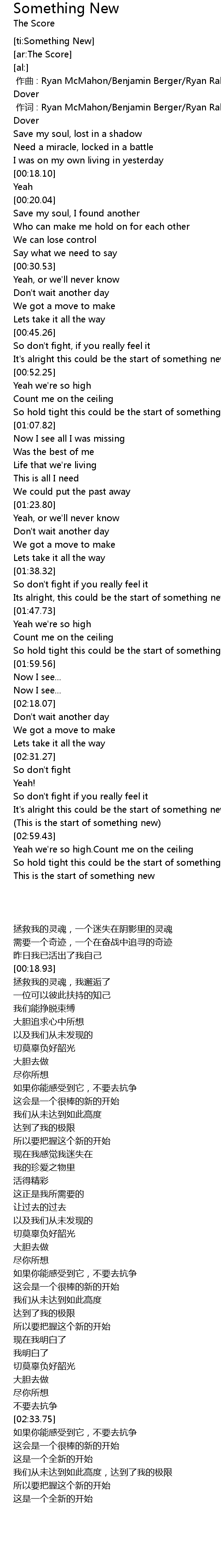 | [03:01.51] | So hold tight this could be the start of something new |
