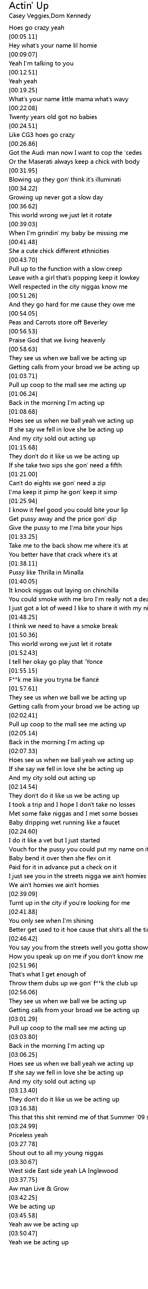 | [03:47.15] | Yeah aw we be acting up |