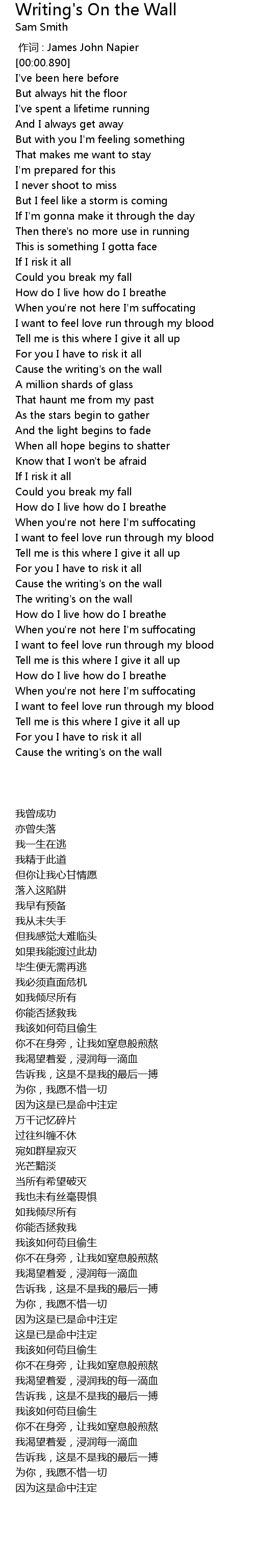 | [01:51.640] | Cause the writing' s on the wall |