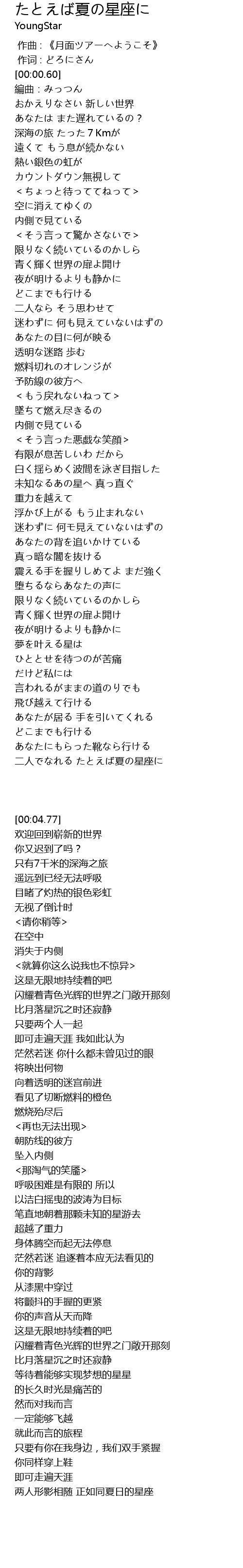 | [04:09.99] | 二人でなれる たとえば夏の星座に |