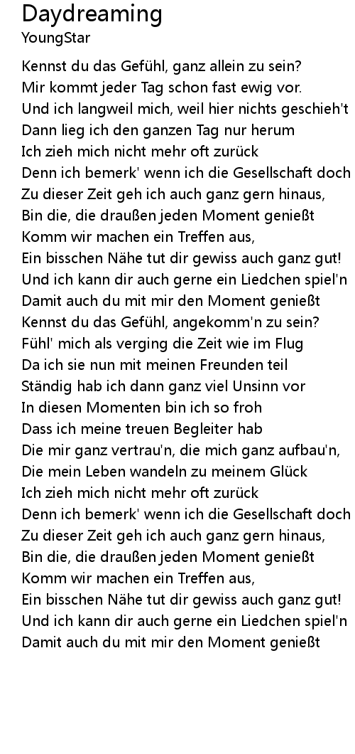| [00:20.15] | Mir kommt jeder Tag schon fast ewig vor. |
