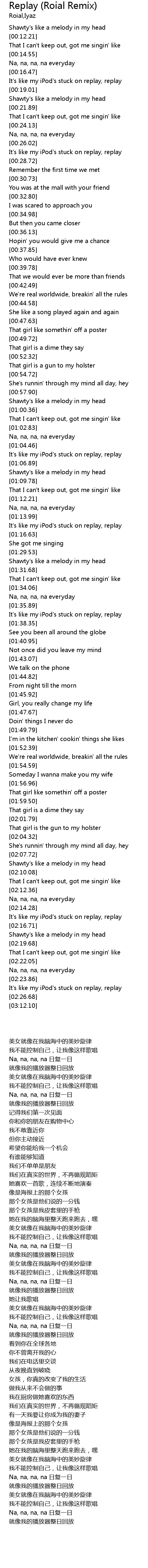 | [00:16.69] | It's like my iPod's stuck on replay, replay |