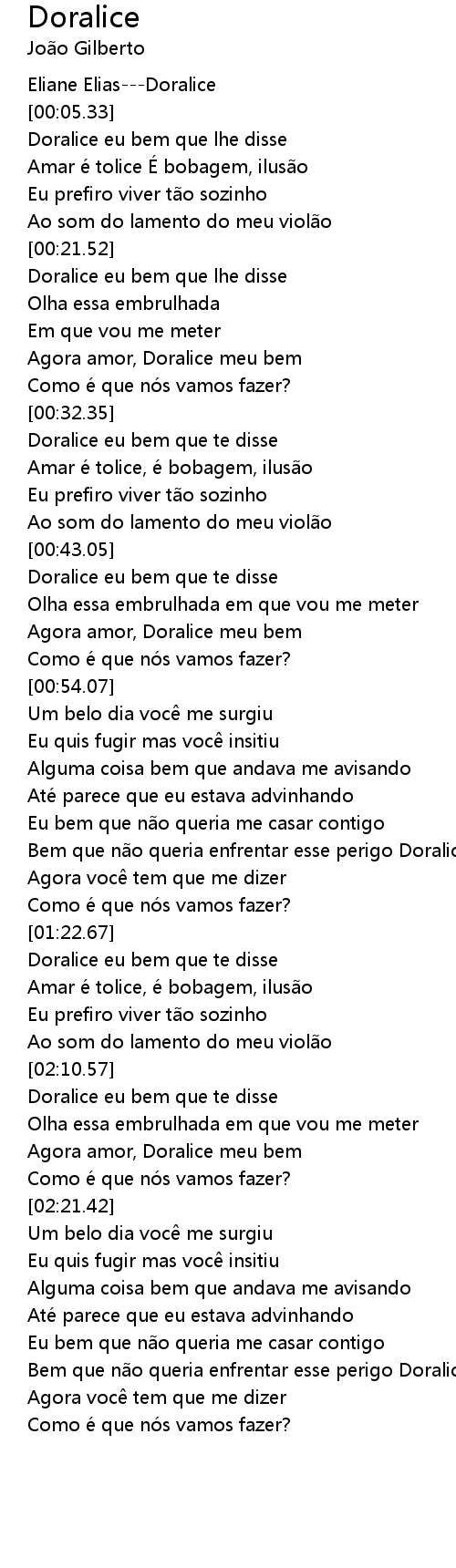 | [02:00.43] | Doralice eu bem que te disse |