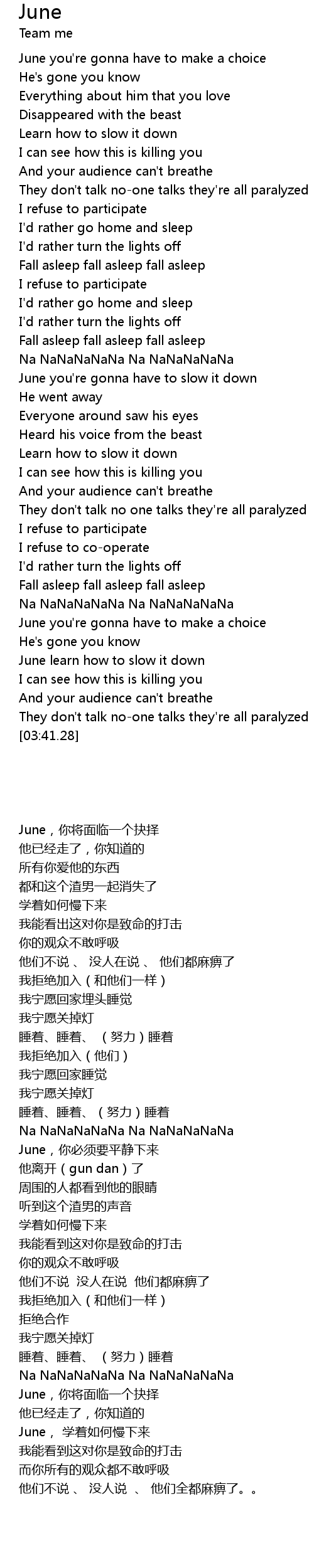| [03:23.88] | June learn how to slow it down |