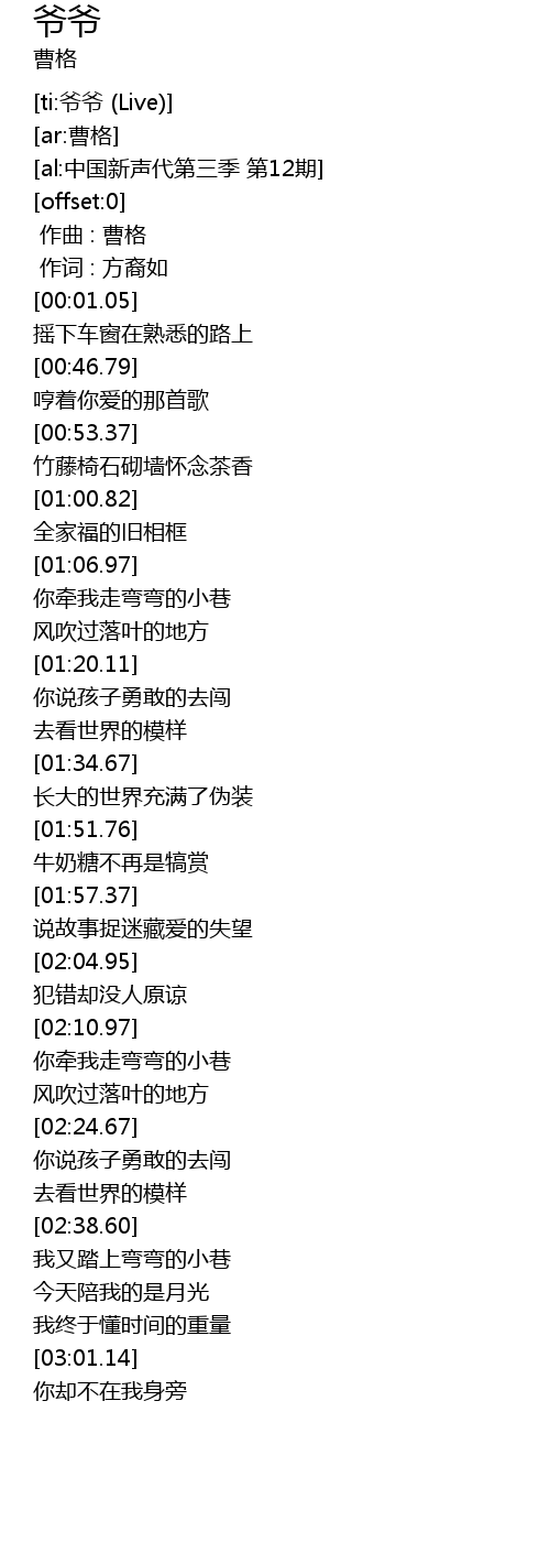 | [ti:爷爷 (Live)] | |
