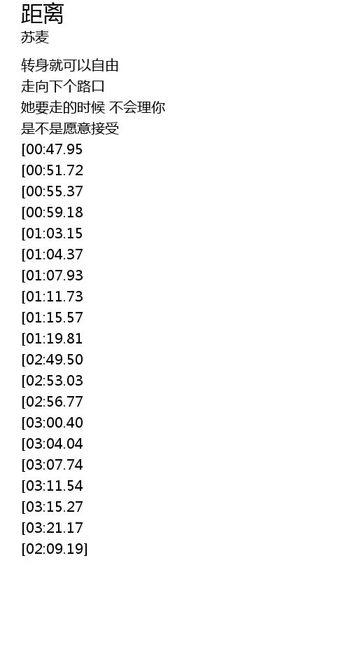 | [04:03.07][03:15.27][01:46.73] | 我们离不开又拉不近的距离 |